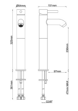 Hoogte kraan is 32.5 cm.