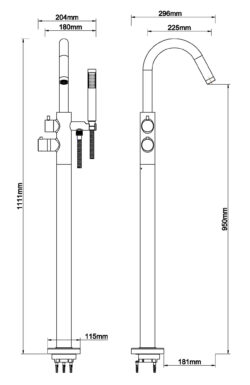 Caral vrijstaande thermostatische badmengkraan geb.staal