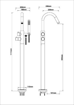 Caral vrijstaande badmengkraan compleet geborsteld koper