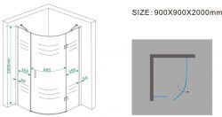 Kwart ronde douchecabine RS 900 x 900 x 2000 mm