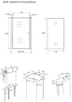 Douchedeur + zijwand 1400x1000x2000 chroom8mm NANO