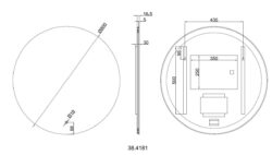 Voorzien van een spiegelverwarmings-mat van 250x350mm ter voorkoming van condensvorming