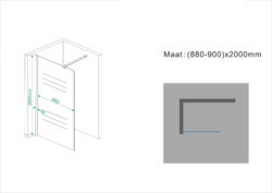 Zeer fraaie Inloopdouche van 90, 100 of 120cm breed en 200cm hoog.